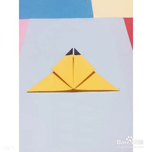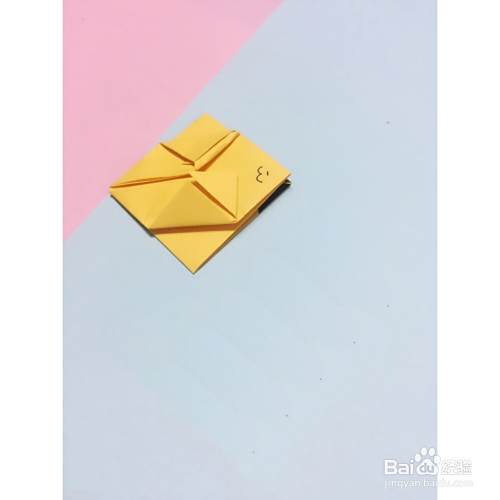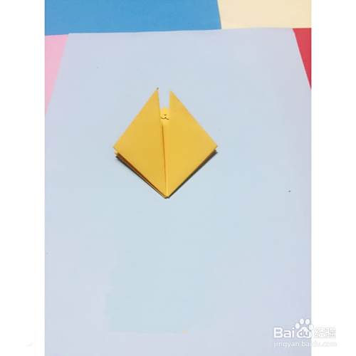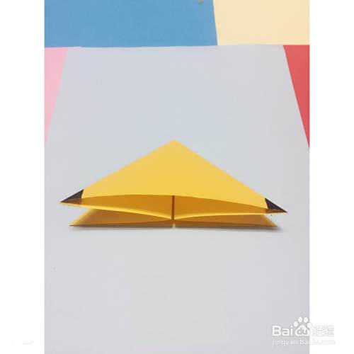 将已画好的折纸翻至背面,用双手将两侧的三角形向中间靠拢并向下按压。