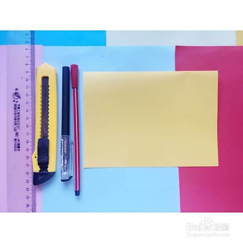 准备工具:尺子、手工刀、黑色水性笔、大红色彩色笔、黄色A4折纸(纸颜色自选) 家里面有这些彩纸所以就这个了。