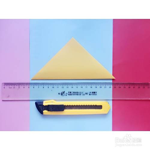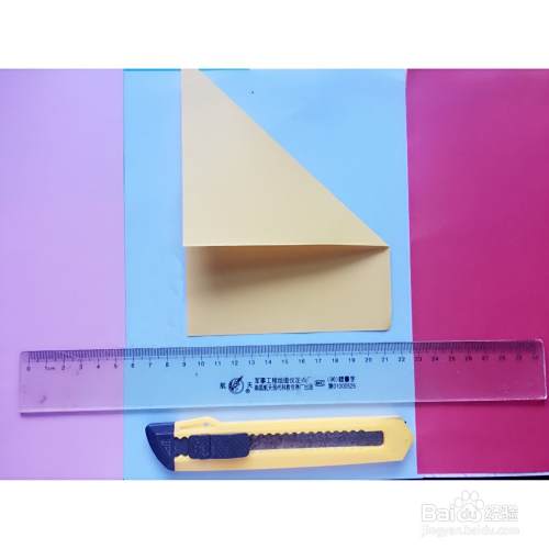 取其中一张对折出三角形,多余部分手工刀裁掉,另一张备用。