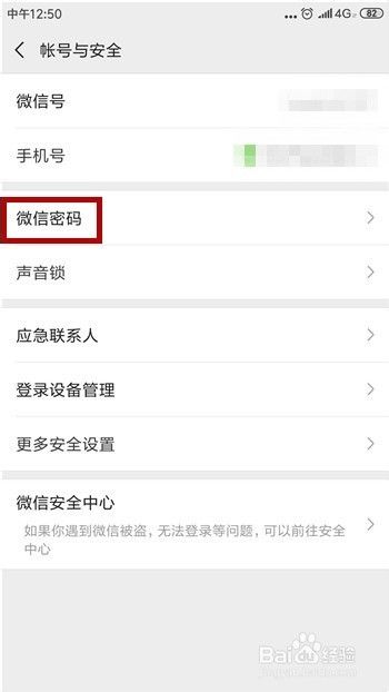 找到其中的微信【微信密码】选项,点击打开该选项。