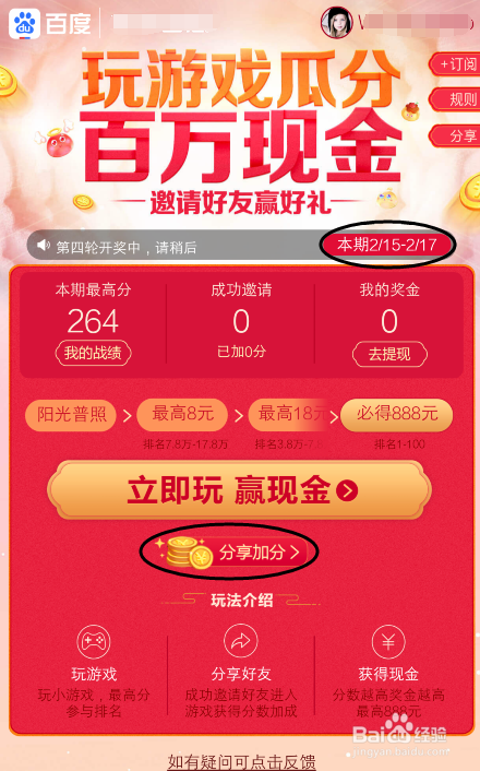 每轮比赛获得的游戏分数,可以参与排名赛,其中前47.8万可以获得现金红包奖励。