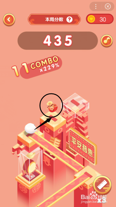 游戏过程中,会随机产生福袋、金币,其中福袋有时可以让“汤圆”升级。