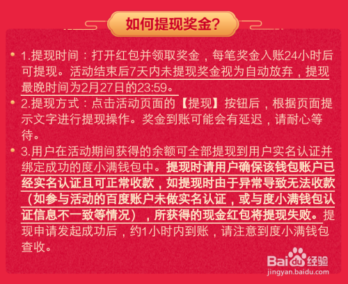 注意:现金提现需绑定【度小满钱包】,最迟在2月27日前提现,逾期系统视为自动放弃。