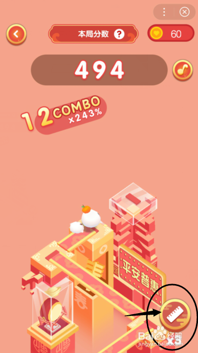 一旦“汤圆”掉落木桩,游戏就结束,可以点击【重新挑战】重新一局。