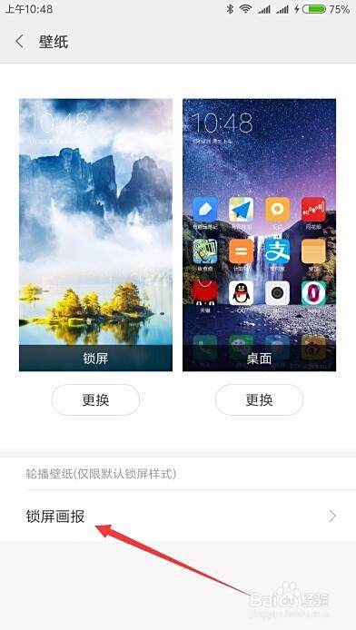 打开手机后,看到漂亮的锁屏画报,我们点击屏幕 右上角的锁屏画报设置按钮