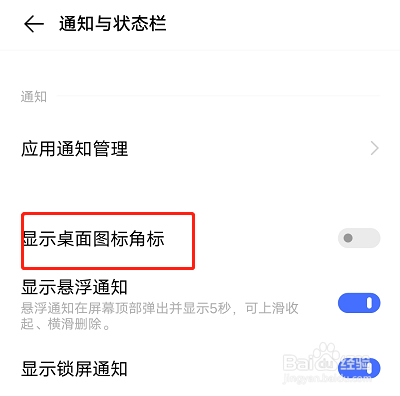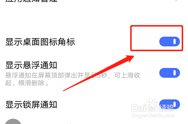 进入页面后,找到“显示桌面图标角标”,如图所示。