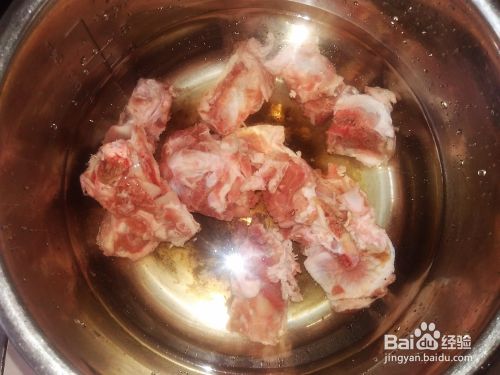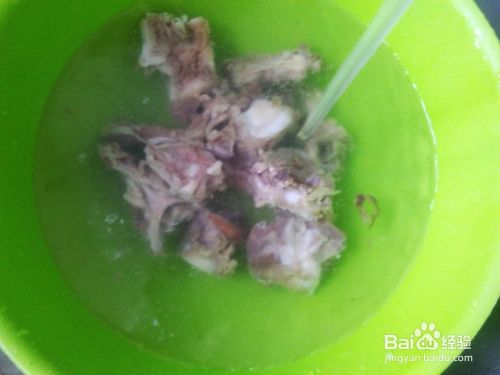 牛骨清洗干净,斩成一块块,放到锅里煮沸灼几分钟,然后捞上来放到冷水冲洗一下。