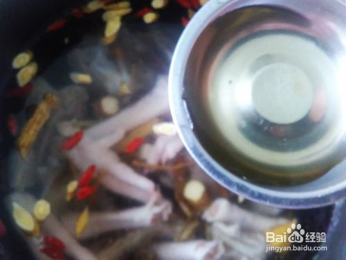 首先把鸡脚清洗干净,然后斩成一段段,木瓜去皮然后切成厚块,滋补中药准备好。