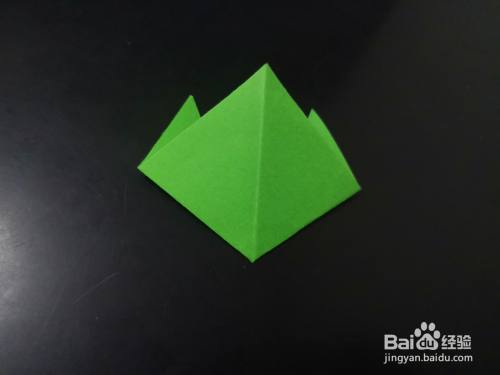 翻面,继续将两边向内折,平分背面折上去的角,再翻面。