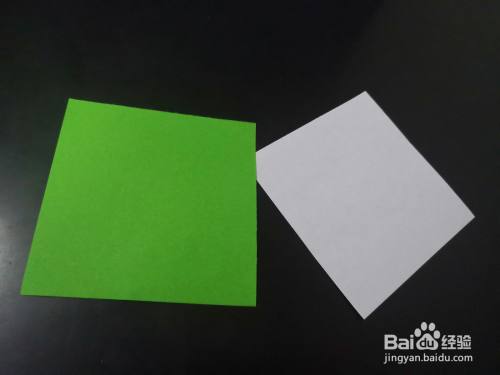 准备一白一绿两种颜色的正方形纸,首先折白色,折出其两条对折线,留下折痕后打开。