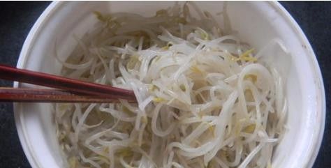 5.豆芽入开水锅中烫熟捞起用色拉油和盐拌匀