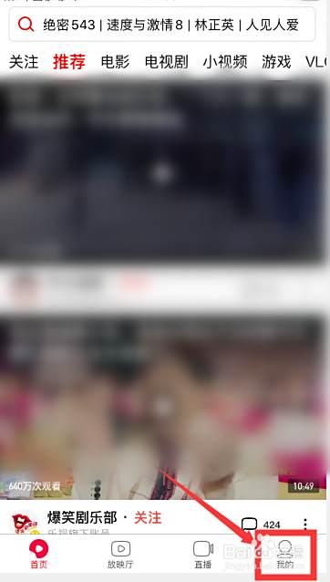手机上,打开西瓜视频后,点击右下角“我的”