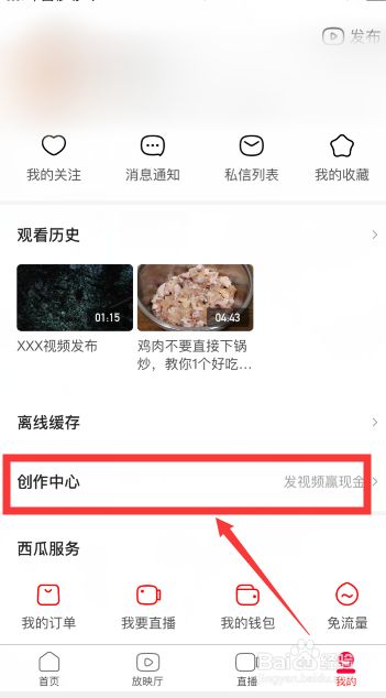 1、打开西瓜视频——右下角我的——创作中心——作品管理