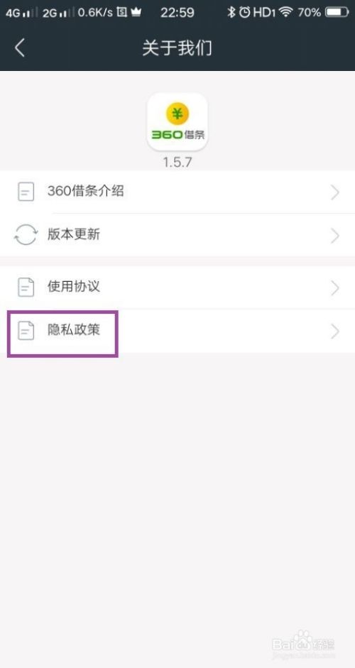 点击进入到关于我们的页面,在页面上可见“隐私政策”,