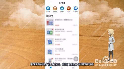 页面切换到物料商城之后,点击页面底部左侧的收钱码。