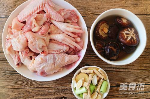 1准备好食材,鸡洗净(内脏不要),切成小块,花菇清洗干净,提前泡发,葱白切段,姜切片,党参切段。