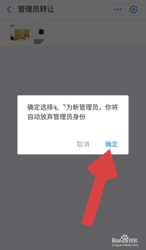 进入管理员转让页面,点击我们想要把管理员转让给的家庭成员,页面提示“确定选择**为新管理员......”,点击“确定”。