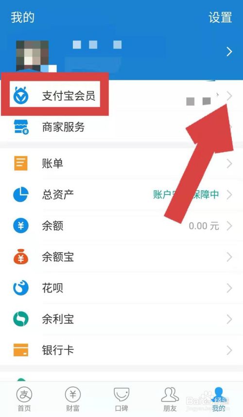 进入支付宝的我的页面后,点击“支付宝会员”一栏后方的“>”,进入支付宝会员页面。