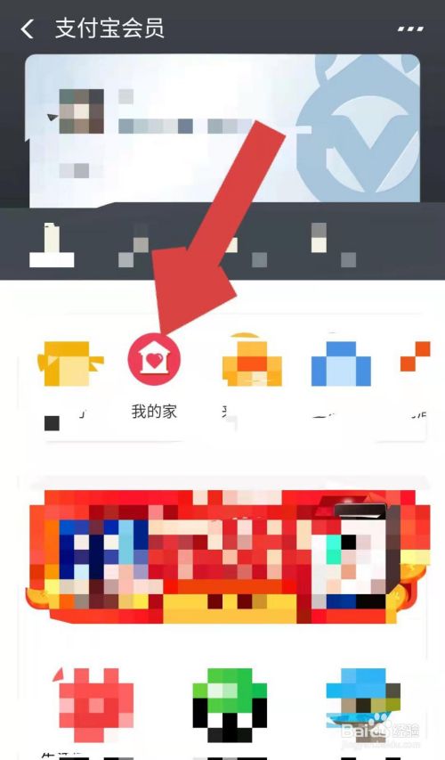 进入支付宝会员页面后,点击如下图所指位置的“我的家”,进入支付宝会员我的家页面。