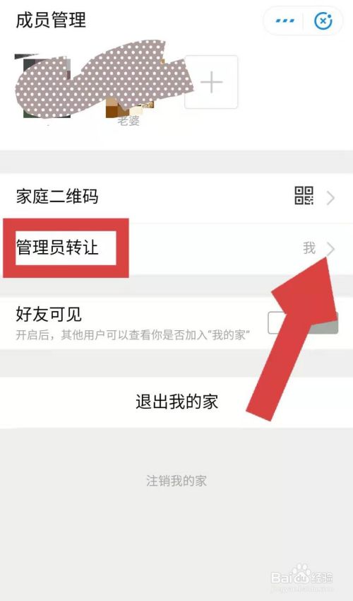 进入我的家成员管理页面后,点击“管理员转让”一栏后方的“>”,进入管理员转让页面。