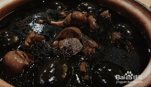 洗净炒锅放入生姜、鸡蛋、猪脚+水,待猪脚煮熟、水煮成剩余两碗左右,再加入甜醋烹煮