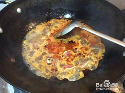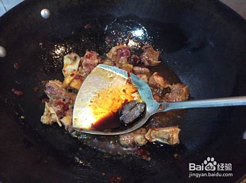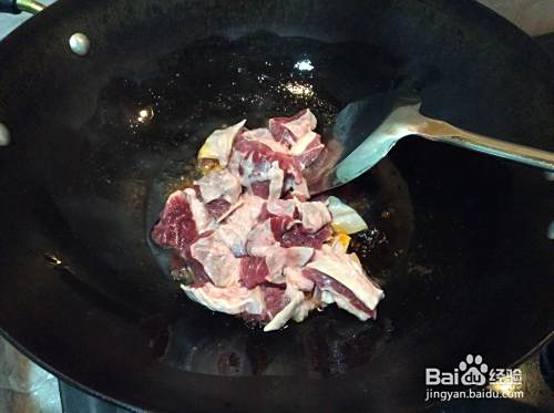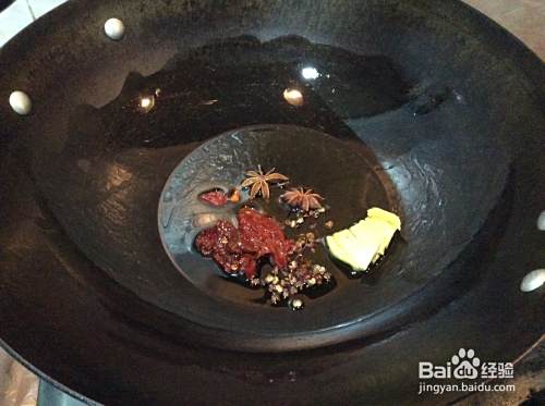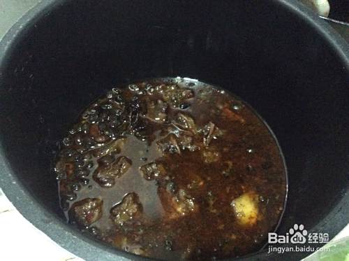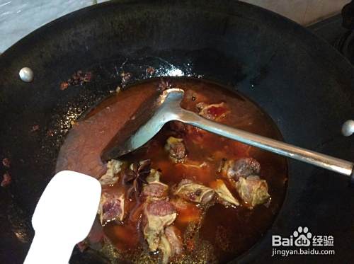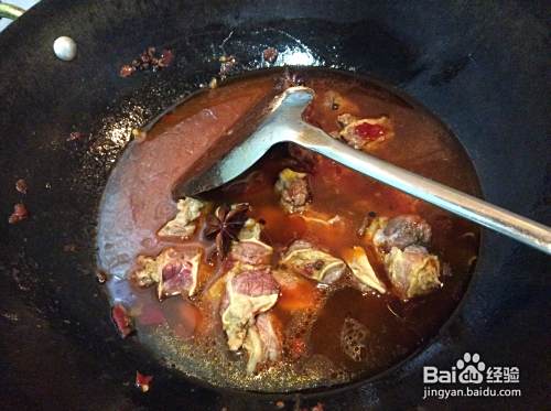锅内放入食用油,放入黄豆酱、八角、姜、炒香,倒入牛肉翻炒,炒干牛肉中的水份。加入酱油、冰糖翻炒,炒至冰糖化,加水淹过牛肉(约加500毫升左右),加入盐,烧开后关火。