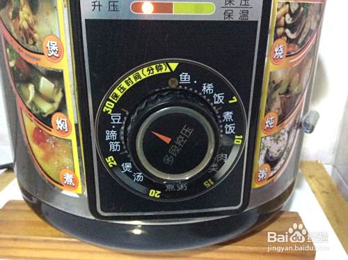 将烧开的牛肉倒入电压力锅中,再倒入黑豆,盖上锅盖,调到“蹄筋、豆”一档,一起烧。