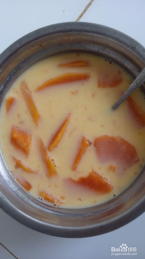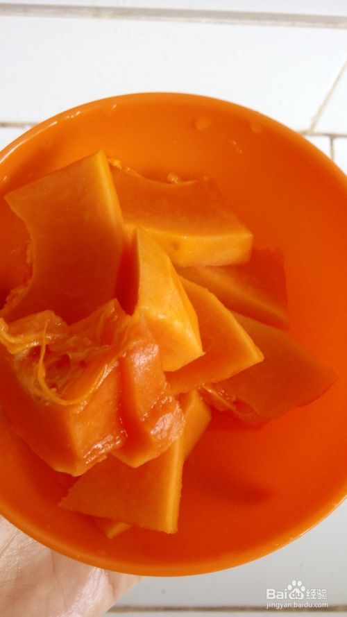 将熟透的鲜木瓜削皮,切成块或丁状(将木瓜打成酱再用,风味更浓)