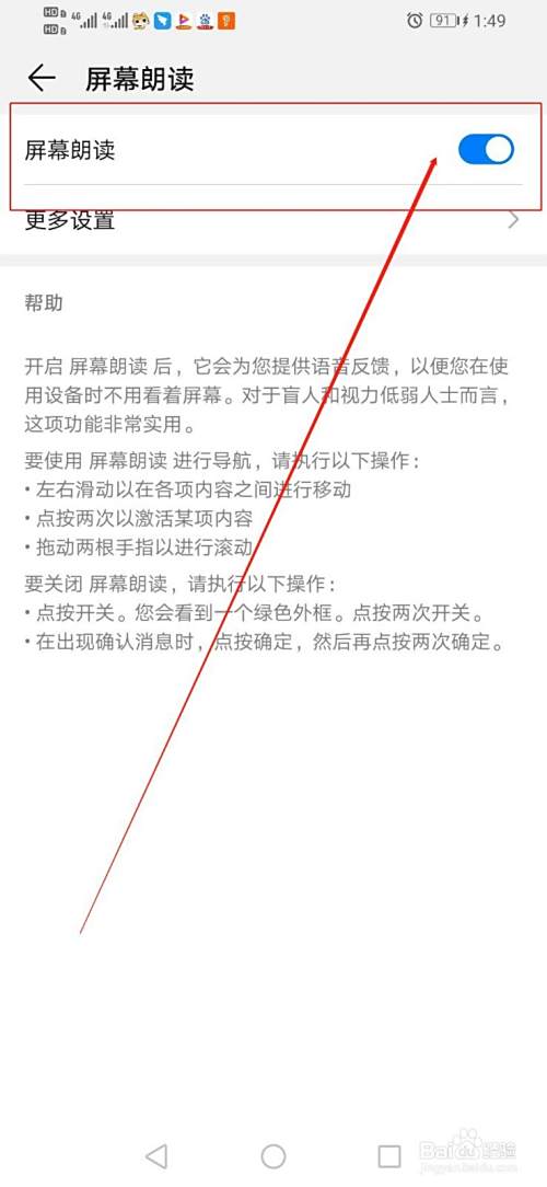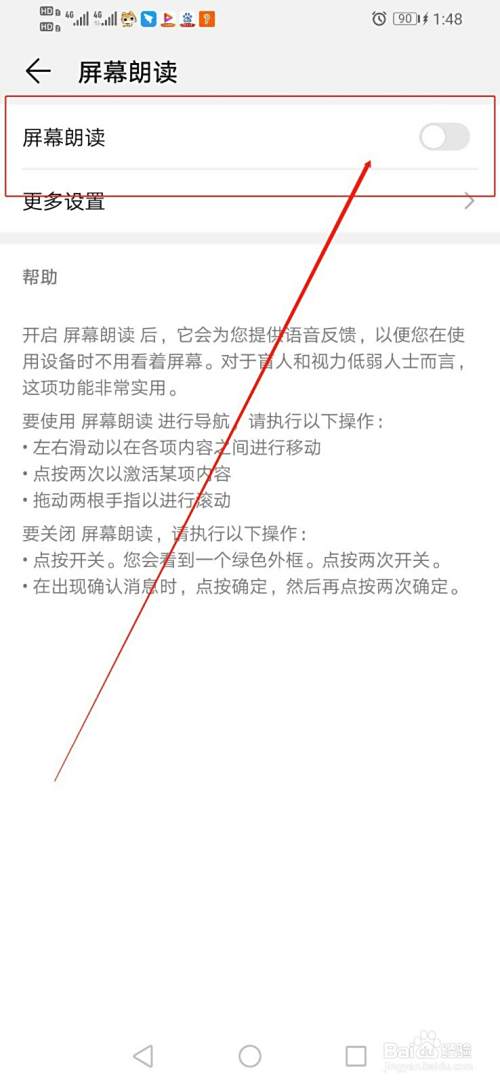 华为手机怎么关闭屏幕朗读功能