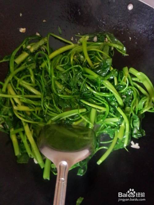 大蒜炒的差不多的时候就可以将空心菜放进锅里了