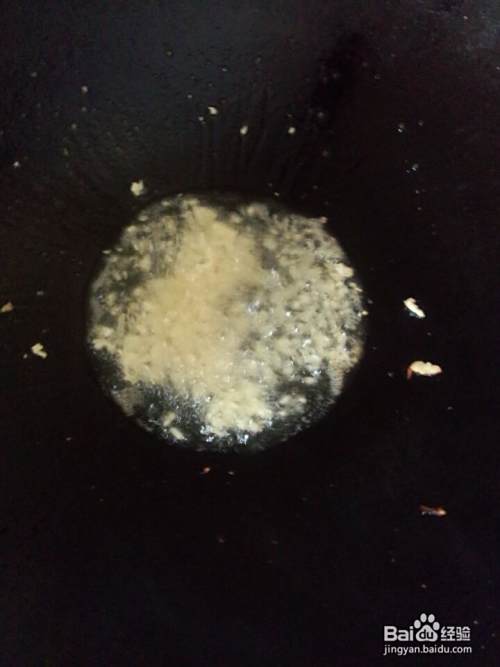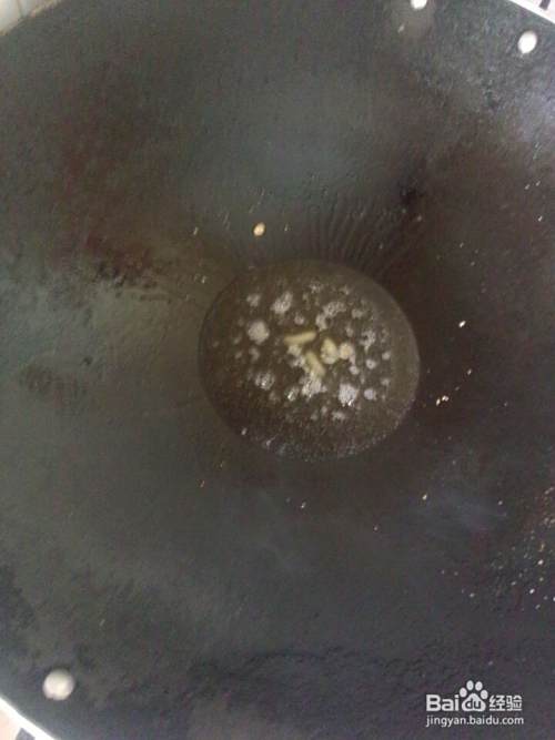 等油煎了有一会的时候就可以把大蒜放进去了。可以多炒一会。将那股香味香味炒出来。