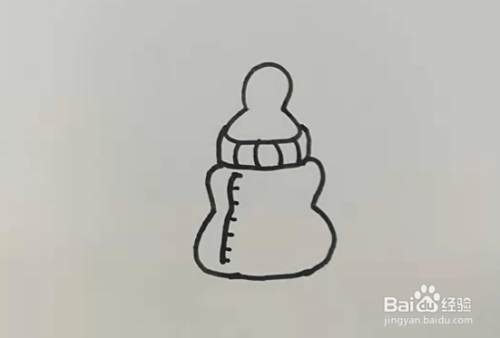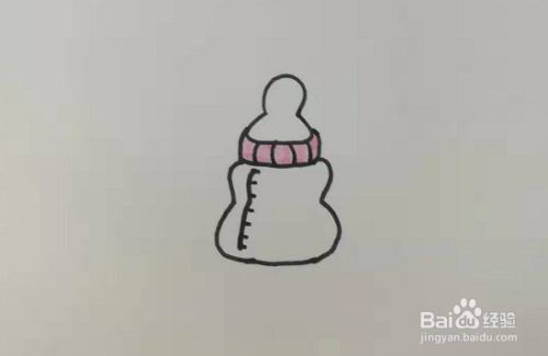 第四步,我们要给奶瓶拧紧的部分画上一些防滑纹,用竖线来表示,线与线之间是平行的,如下图所示,这一步非常简单啦。