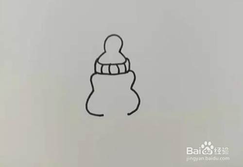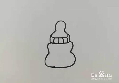 第五步,这里我们开始画奶瓶的瓶身的部分,在刚刚画好的图案往下画,画一个类似与两个对着的3的图案,如下图所示。