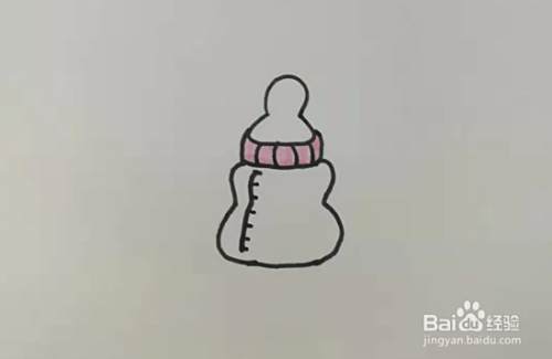 最后一步,就是上色,一般小朋友的奶瓶都是透明的,所以不用在瓶身的位置涂颜色,我们可以在拧紧的部分,画上自己喜欢的颜色,好啦,这样就画好啦,是不是很简单呢?