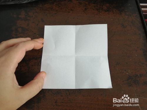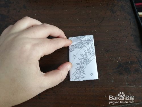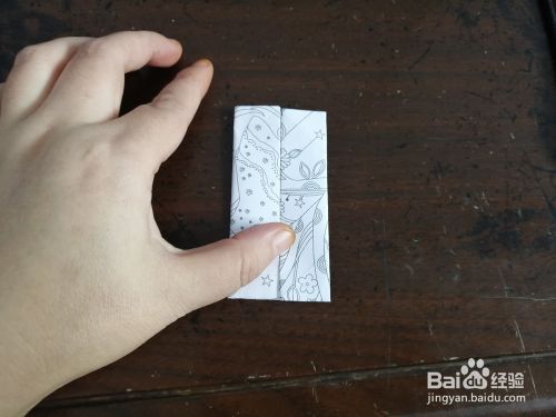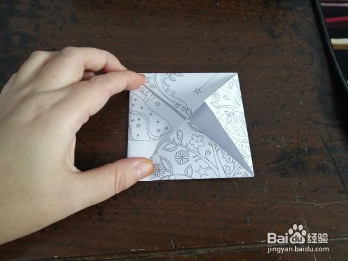 把彩纸翻到另一面,把上侧的边向下折,如图一。把两侧的角向内折,如图二。