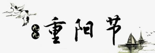 第一步:在空白的画报上写上主题“九九重阳节”,在主题的左上方画上两只鹤,右下方画两条船。