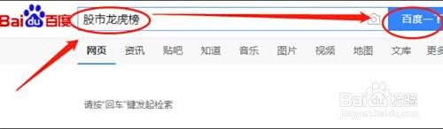 打开百度搜索主页,在搜索栏内输入(股市龙虎榜)关键词进行搜索。