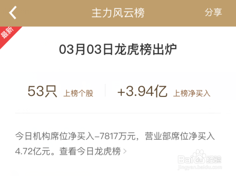 百度搜索出股市龙虎榜内容后,打开其中一个正规券商主页龙虎榜即可查看。