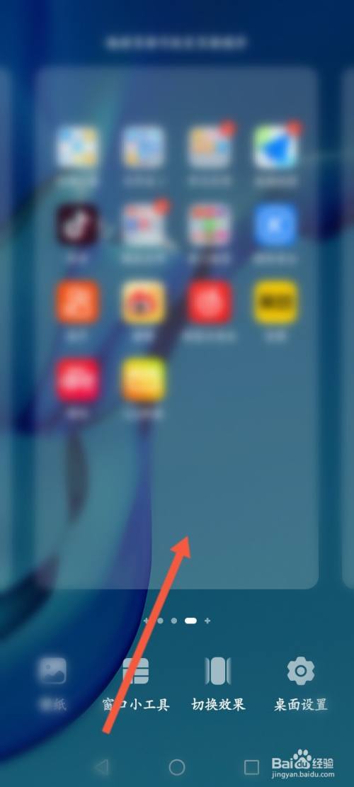 在华为手机桌面上,两指向内滑动屏幕。