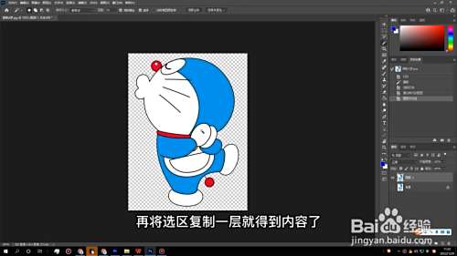 系统就会自动将选区反选,再将选区复制一层就得到内容了。