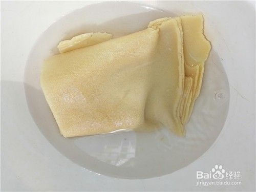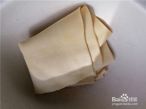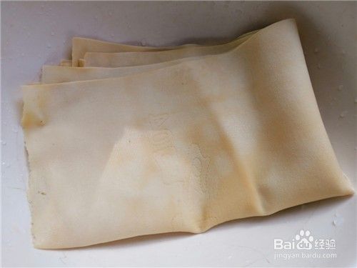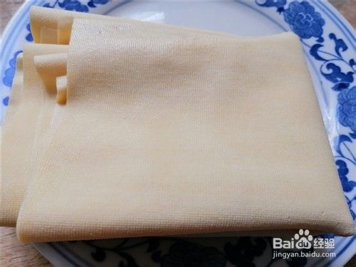 豆腐皮2张,刚买来的豆腐皮通常是偏白色的。