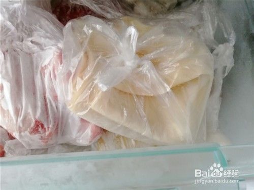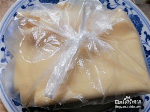 4、将豆腐皮连着包装放于冰箱的冷冻层。
