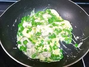 准备好主要的食材,鲜牡蛎要提前洗净壳上的泥沙。韭菜摘洗干净。