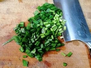 韭菜洗净后切碎。尽量买嫩韭菜吧。
