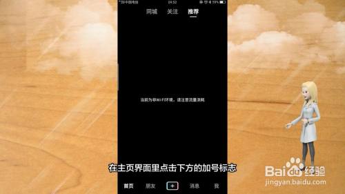 进入手机里的抖音,在主页界面里点击下方的加号标志。