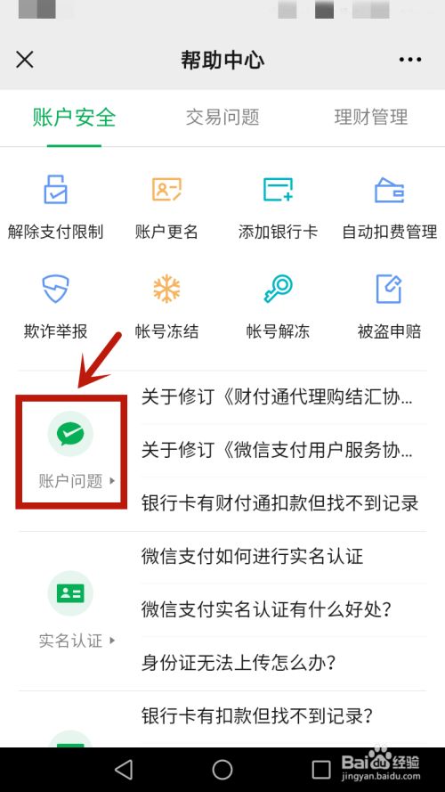 点击“账户问题”。