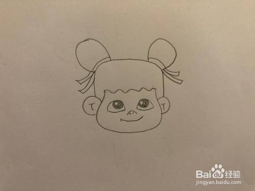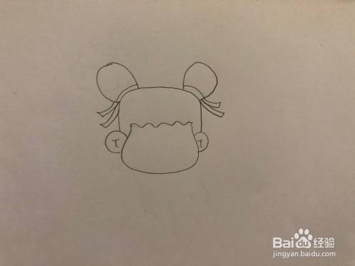 用铅笔在绘画纸上画一个U的图案,在U的两边画2个半圆,半圆里面画2个斜线。