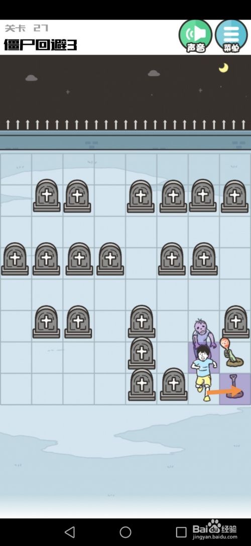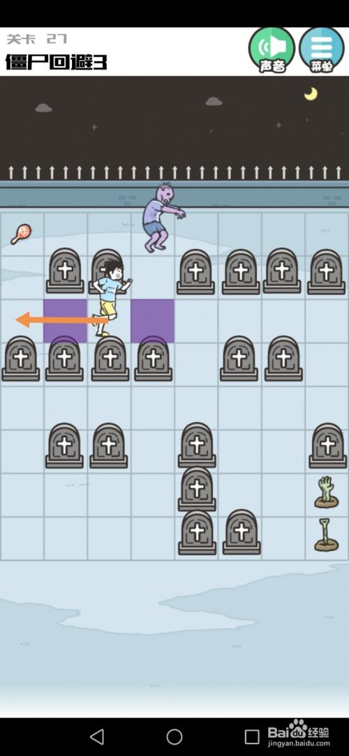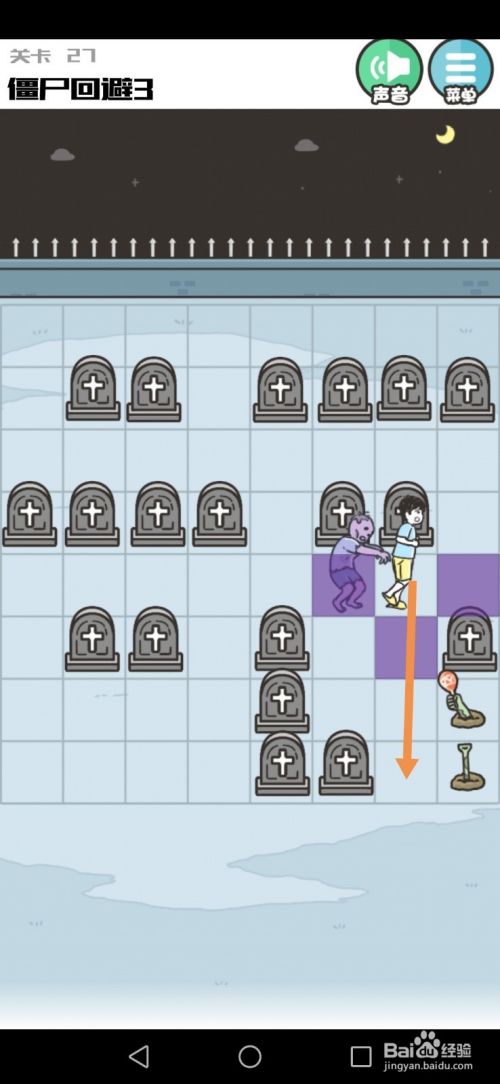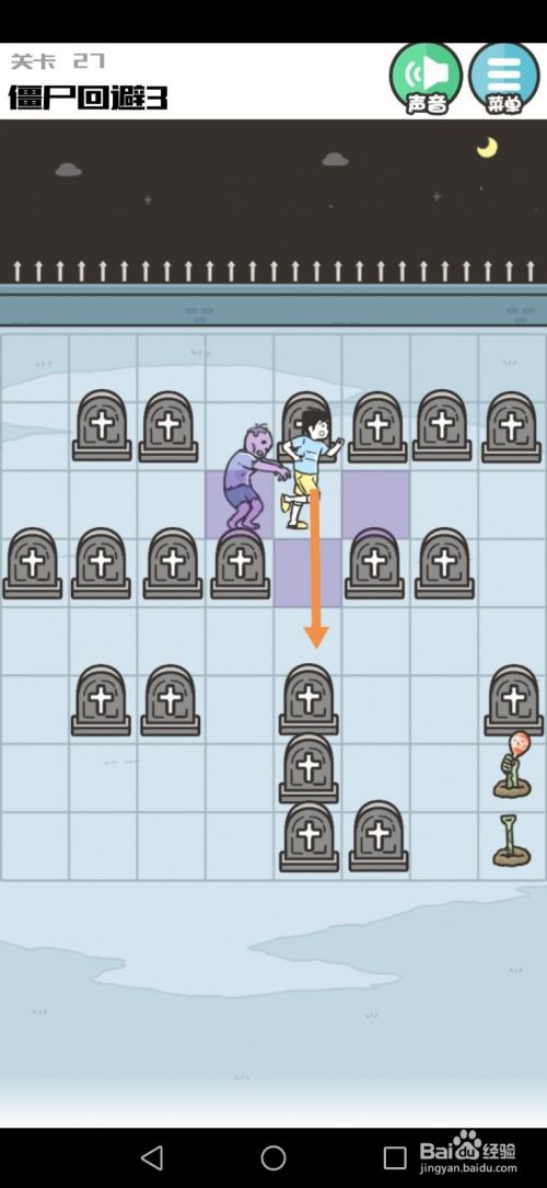 第27关先向下移动到下图中箭头标注的位置。