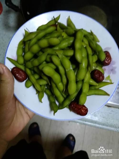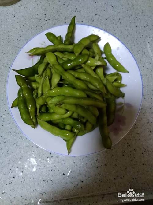 挑选颗粒丰满新鲜的毛豆,大概一盘。