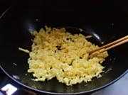 鸡蛋打入碗中,搅散,入锅中炒碎备用。
